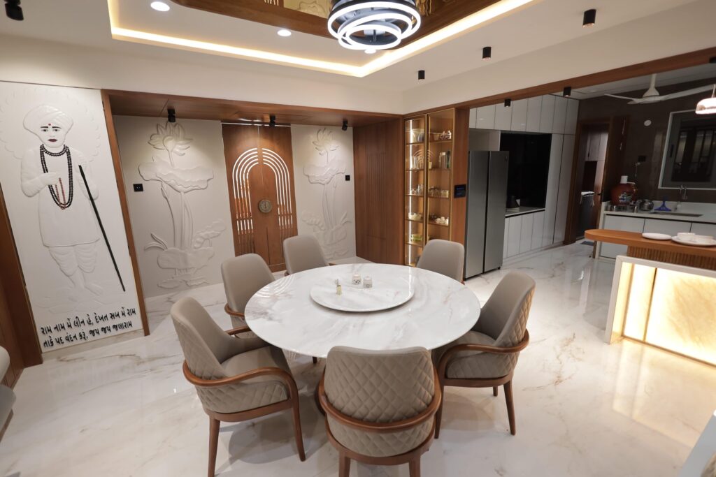 The Arnav Apartment 4 BHK residence stands as a refined example of interior architecture by Vogue Dimension. The completed home delivers spaciousness, functionality, and timeless elegance tailored to contemporary living.