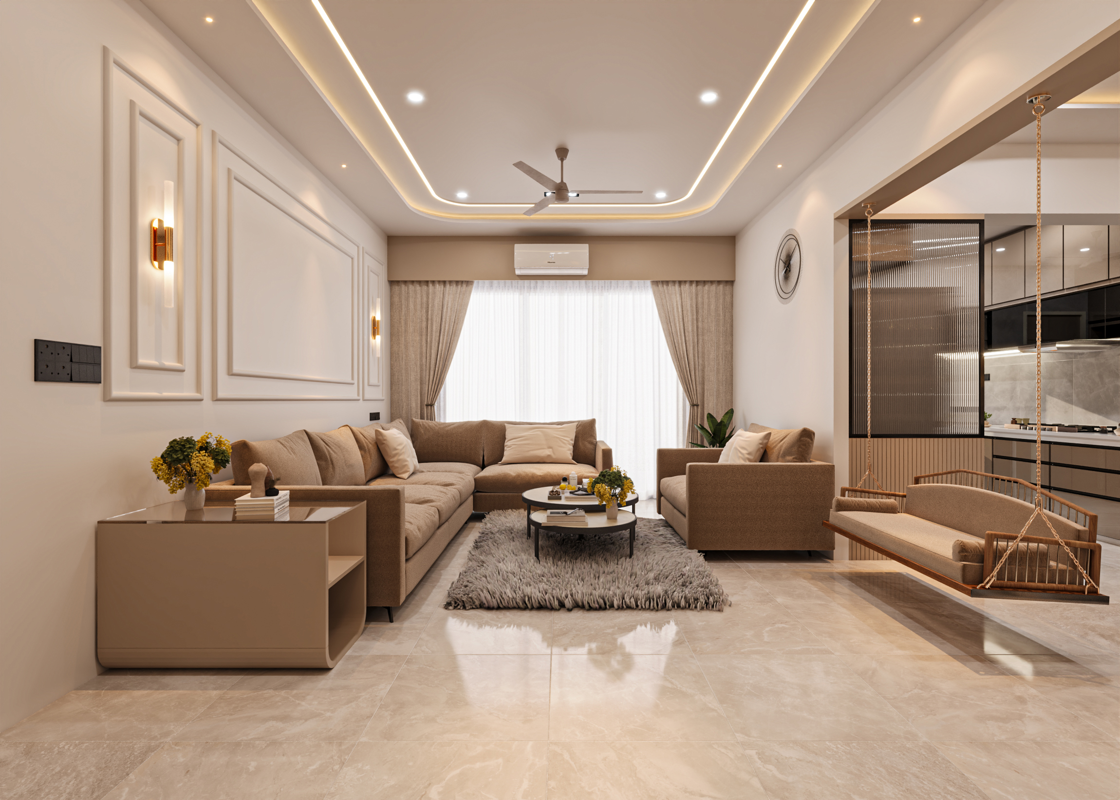 The Shilpan Nova 3 BHK apartment was designed as a refined residential space that balances architectural clarity with everyday comfort. We began with detailed space analysis and client consultations to understand lifestyle requirements, functional needs, and aesthetic preferences. The layout was optimized to improve circulation, enhance openness, and maintain privacy across zones.