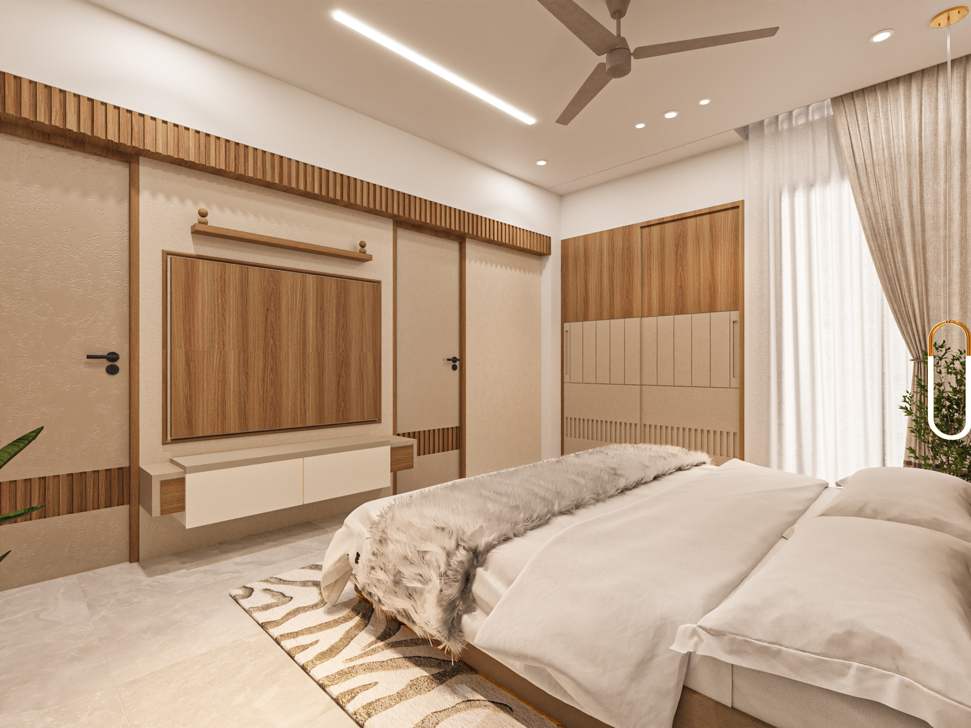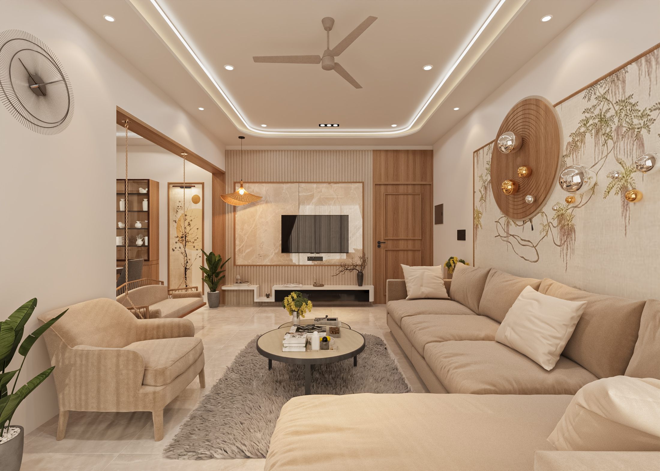 Layered lighting, including ambient, task, and accent lighting, enhances depth and functionality. Concealed wiring, smart switch placements, and integrated electrical planning provide modern convenience without affecting aesthetics.