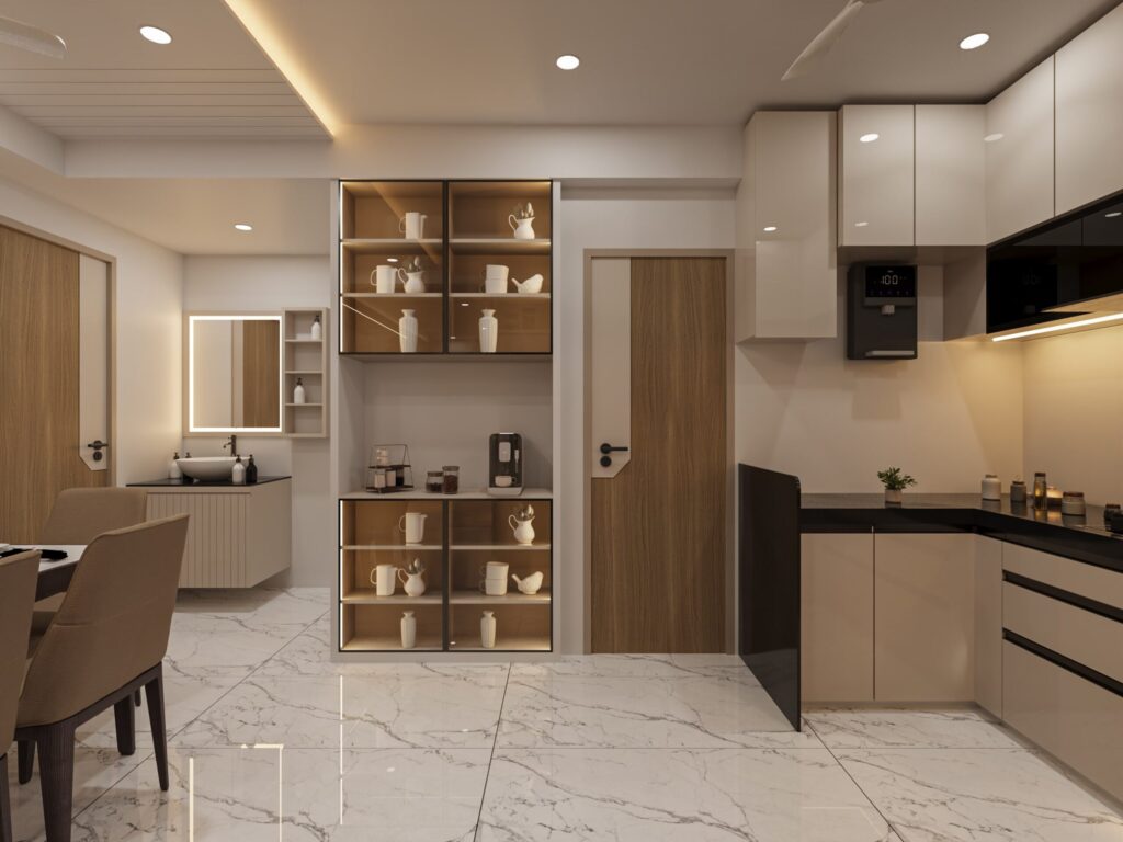The kitchen was designed with a focus on efficiency and long-term durability. Modular cabinetry, integrated storage solutions, and practical layouts support daily routines while maintaining a contemporary aesthetic. Utility areas were discreetly integrated for functional convenience.